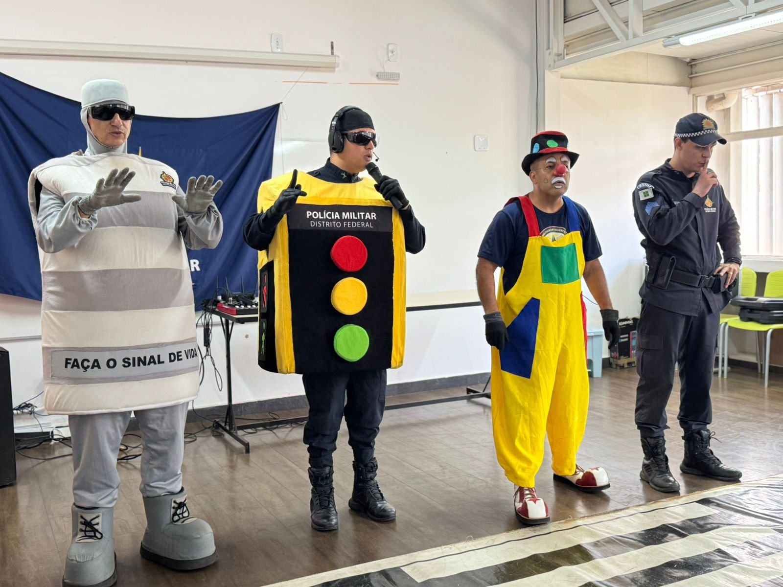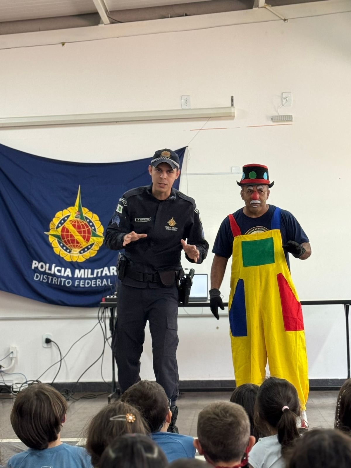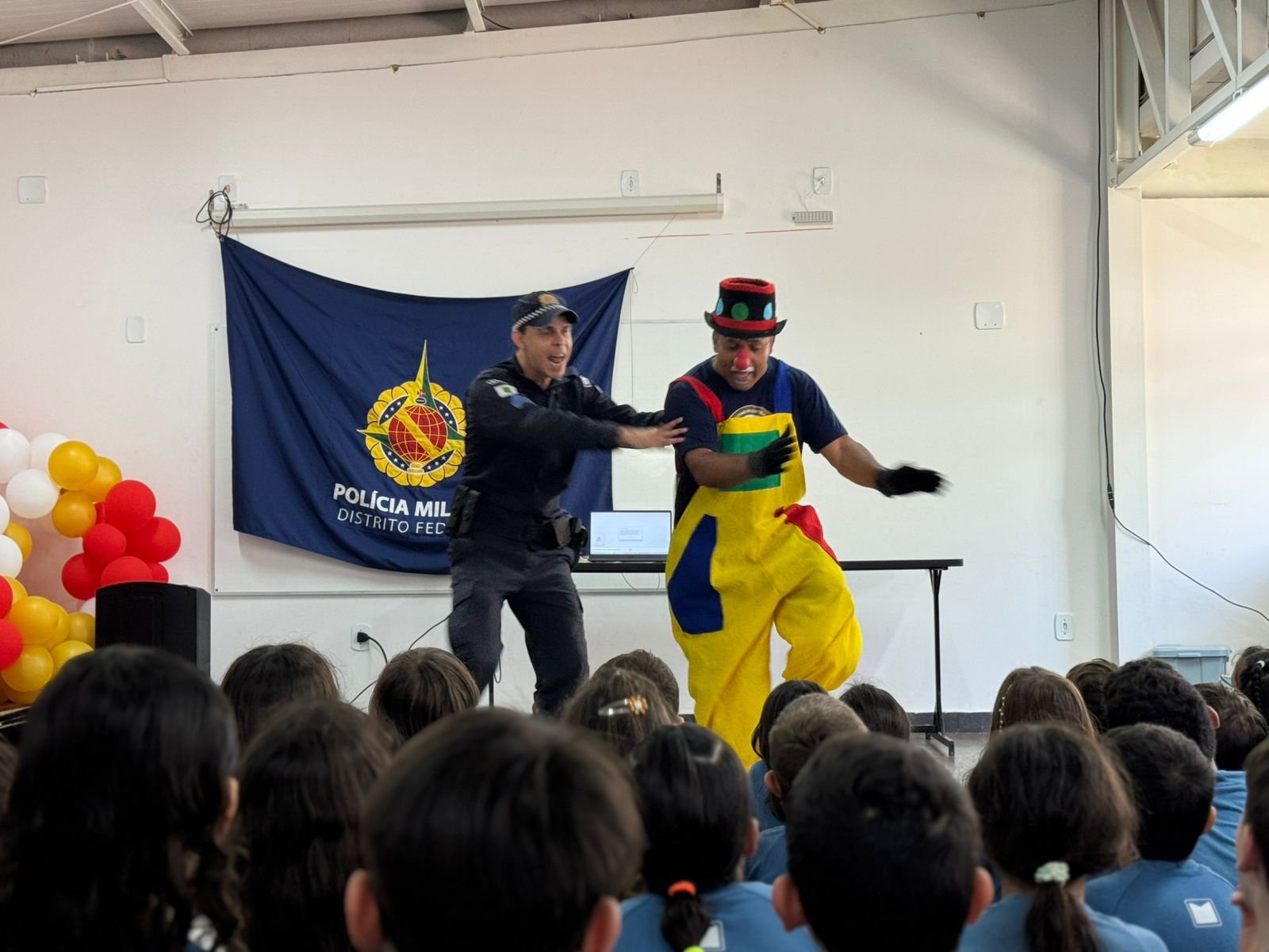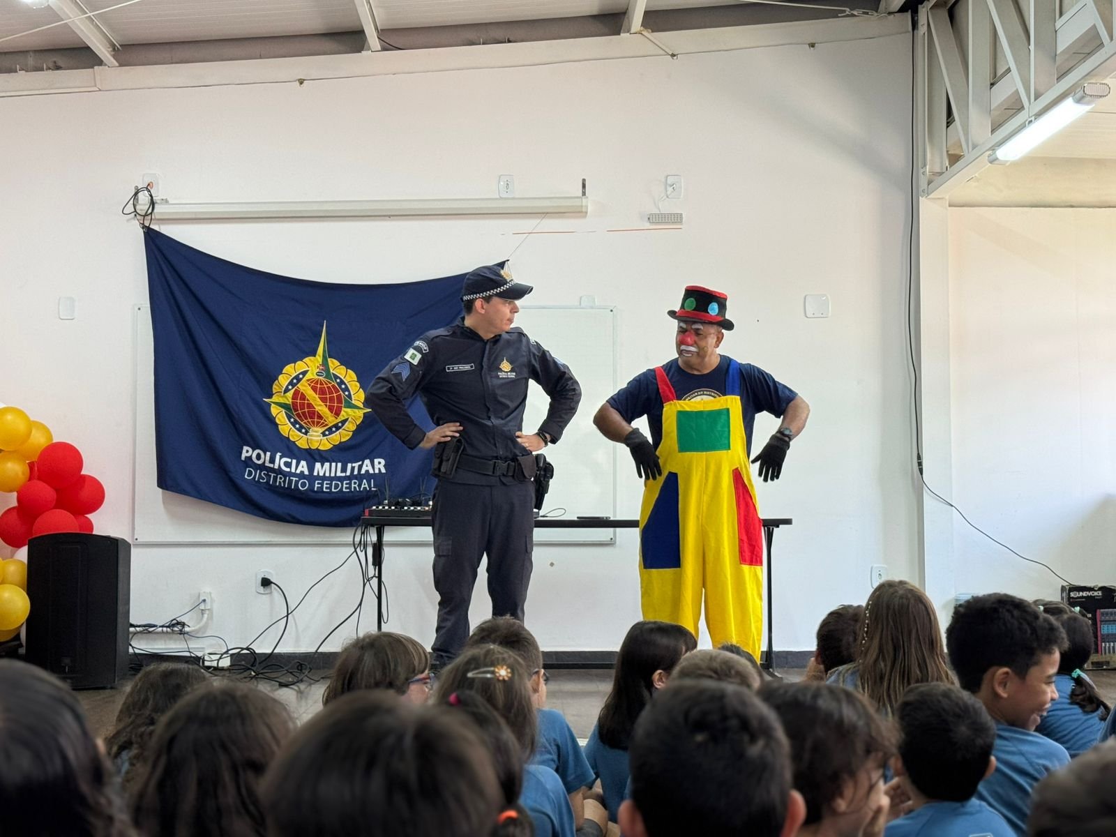 Como parte das atividades do Projeto de Educação para o Trânsito, os alunos da Educação Infantil ao 3º ano participaram de uma apresentação especial realizada pelo Teatro da Polícia Militar do Distrito Federal. A ação teve como objetivo promover, de maneira lúdica e educativa, a conscientização sobre comportamentos seguros no trânsito.
